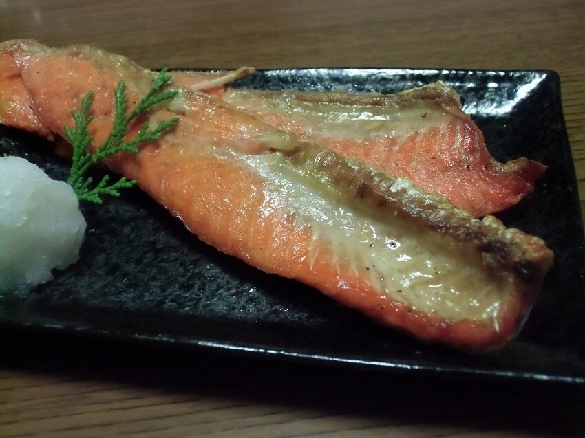 紅鮭の内臓を囲む腹部の身で、ほどよい脂のりと濃厚な味わい、しっとりとした食感が特徴です。