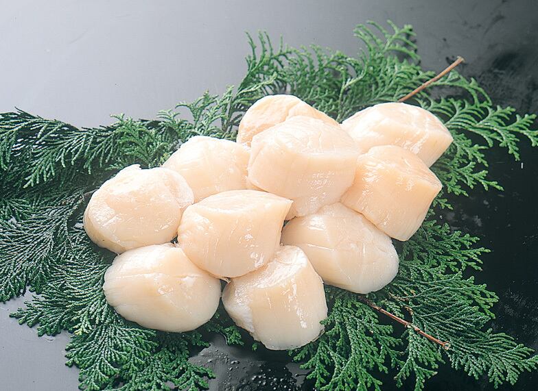 北海道産の帆立貝から、ひとつひとつ丁寧に貝柱部分を取り出し、瞬間冷凍しています。