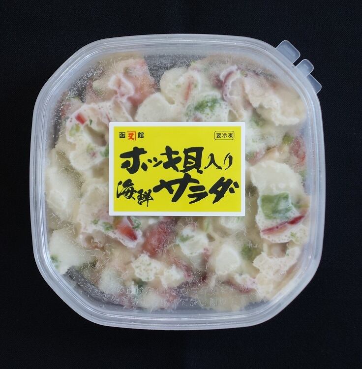 カナダホッキ貝ひも(カナダ産)、あかいか、調味液(水飴、食塩、米発酵調味料、その他)、半固体状ドレッシング、にしんの卵、醤油、砂糖、発酵調味料、食塩、ヒトエグサ、ホタテ貝エキス調味料、ガーリックパウダー/ソルビトール、調味料(アミノ酸等)、増粘剤(加工でん粉、増粘多糖類)、酒精、pH調整剤、香辛料抽出物、(一部に小麦・卵・乳成分・いか・さば・大豆・リンゴ・ゼラチンを含む)