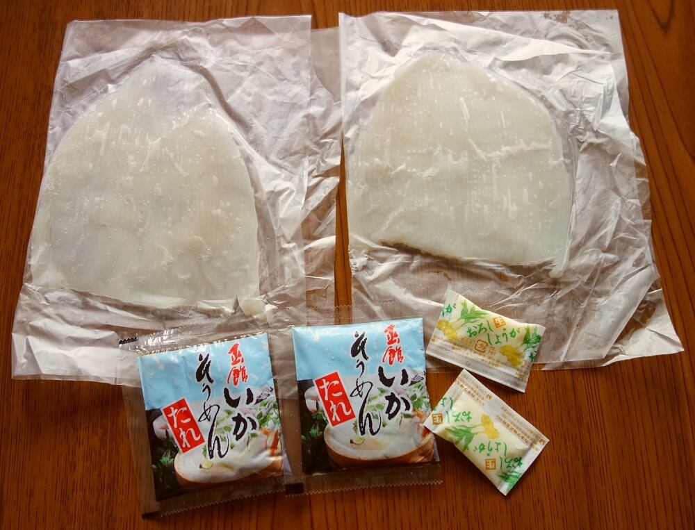 タレと生姜が付いていますので、自然解凍するだけで手軽にいかそうめんを楽しむことができます。