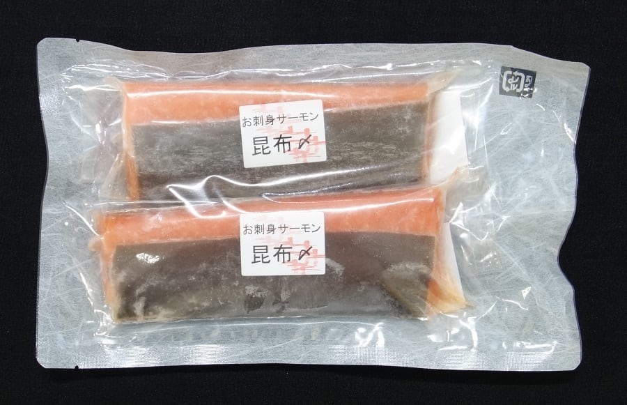 お刺身用のサーモンを北海道産の真昆布で〆ました。
