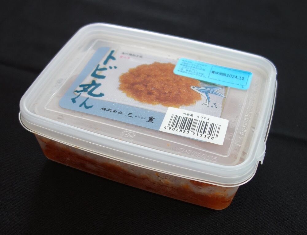 トビ魚の卵(インドネシア産)、しょうゆ、砂糖、みりん、発酵調味料、食塩、かつお節エキス、こんぶエキス、ワイン、植物たん白加水分解物/ソルビトール、調味料(アミノ酸等)、保存料(ソルビン酸K)、酒精、酸味料、着色料(黄5、黄4)、(一部に小麦・大豆を含む)