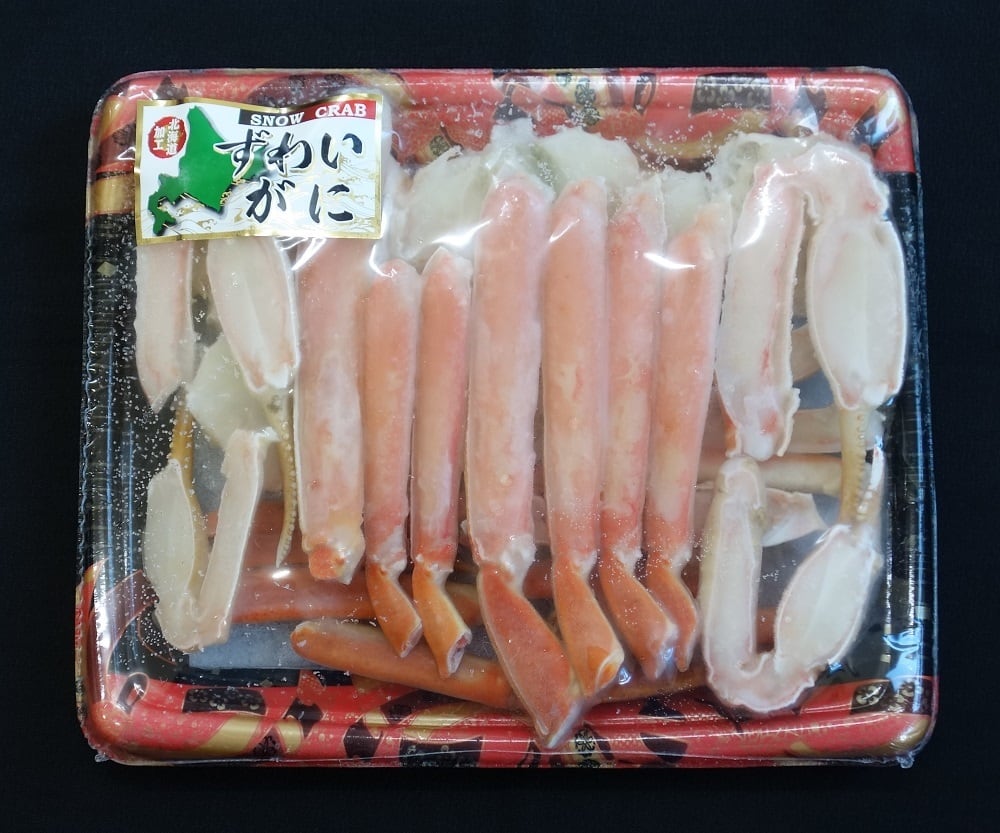 身入りたっぷりのずわいがにを茹で、殻を半分ほどむいて食べやすく加工しました。