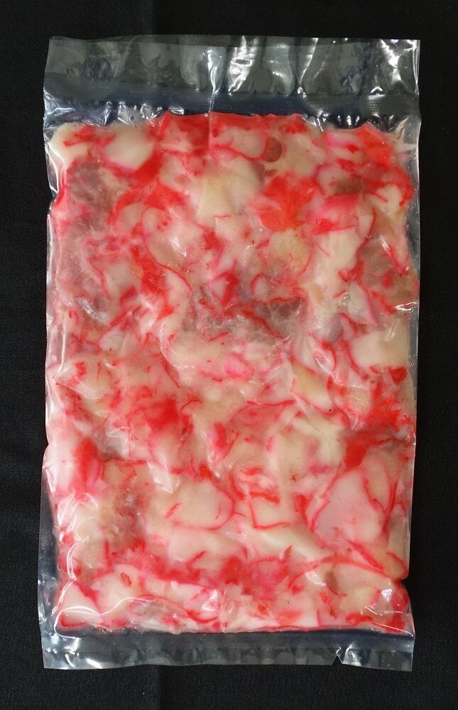 鯨ベーコンの製造過程でどうしても出てしまう形の悪いものやサイズが不揃いなものを、無選別で簡易包装にて詰めました。