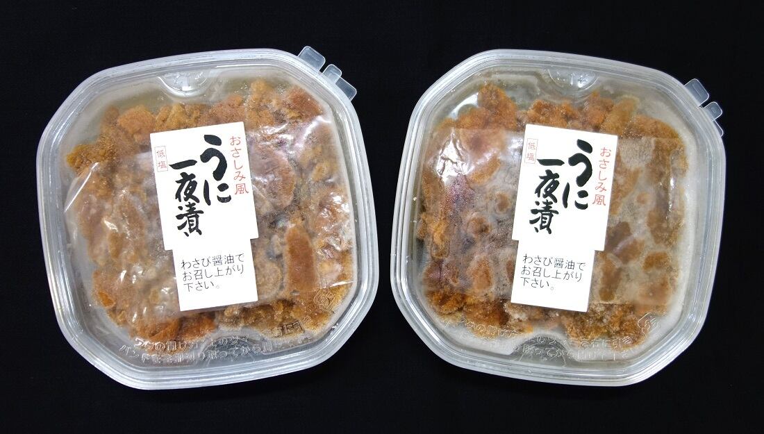 主にチリ産原料を使用、北海道函館市で加工された低塩仕上げの一夜漬けうにです。
