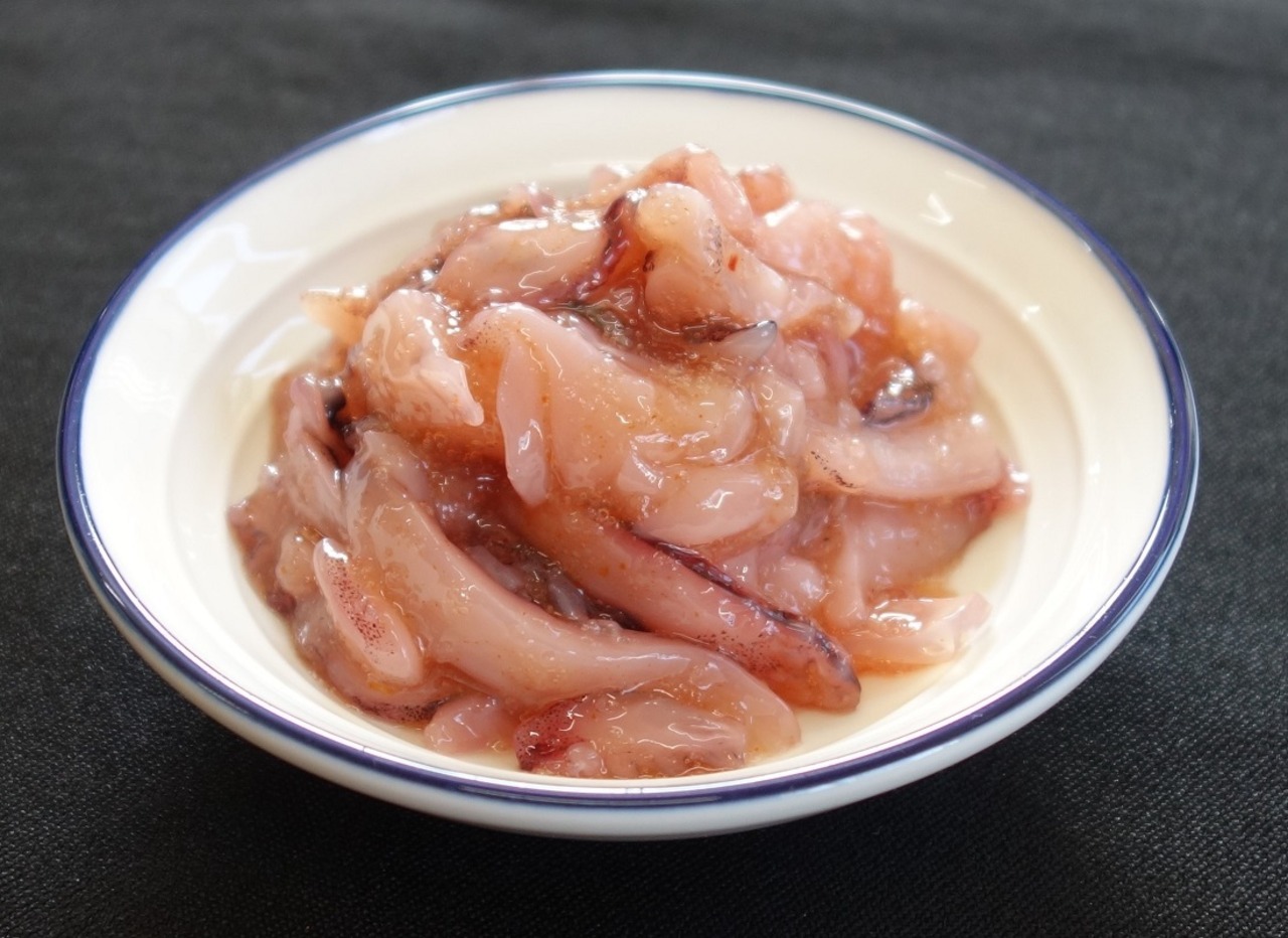 コリコリとした国産真いかの足のみを使い、辛子明太子で和えました。